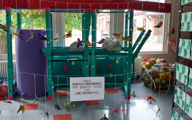 Ann Grönborg, Maire de Mévoisins, invitée par l’équipe enseignante, est venue admirer les jolies réalisations des enfants de la petite section de maternelle au CM2, et saluer les idées créatives des enseignants.